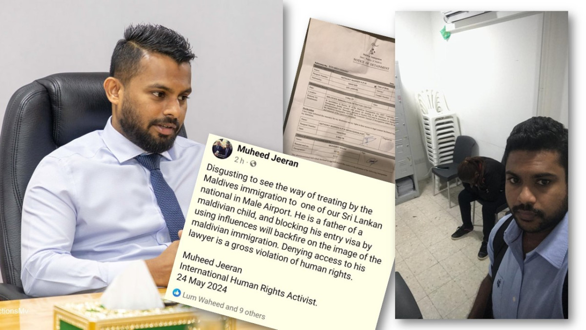 ލަންކާއިން ޓުއަރިސްޓް ވިސާގައި ހުކުރު ދުވަހުގެ ހެނދުނު 8:30 ޔޫއެލް 101ގެ ފުލައިޓުގައި އައިސް ލަންކާގެ ރައްޔިތެއް ކަމަށްވާ ނަދީޝް ޕެރޭރާ ހިފަހައްޓާފައިވަނީ އިމިގްރޭޝަނުން އެންމެ މަތިން އޯޑަރު އައިސްގެން ކަމަށް މައުލޫމާތު ލިބެއެވެ. މި މައްސަލައިގައި ނަދީޝްގެ ވަކީލުންގެ ގޮތުގައި ހަރަކާތްތެރިވާ އެމްއެމް ޗެމްބަރސް އެލްއެލްޕީ މެނޭޖިންގ ޕާޓްނަރ މަރިޔަމް މުނާ ރާއްޖެއެމްވީއަށް މައުލޫމާތު ދެއްވަމުން ވިދާޅުވީ އިމިގްރޭޝަނުން ނަދީޝް ހިފެހެއްޓުމުން، އެއަރޕޯޓަށް ދިޔަ ކަމަށެވެ. ނަމަވެސް އެއަރޕޯޓަށް ދިއުމުންވެސް އިމިގްރޭޝަން އޮފިސަރުން އެކަމަށް ހުރަސް އެޅި ކަމަށާއި، އެތަނަށް ދިޔައީ ނޮޓަރައިޒްޑް ޕަވަރ އޮފް އެޓަރނީއެއް ހިފައިގެން ކަމަށެވެ. އަދި އިމިގްރޭޝަން އޮފިސަރުން ބުނަމުން ދަނީ ނަދީޝް އަށް ދިވެހިރާއްޖެއަށް އެތެރެ ނުވެވޭ ކަމަށާއި، އެހެންކަމުން ދިވެހިރާއްޖޭގެ ވަކީލަކަށް އޭނާގެ ވަކީލަކަށް ނުވެވޭނެ ކަމަށެވެ.