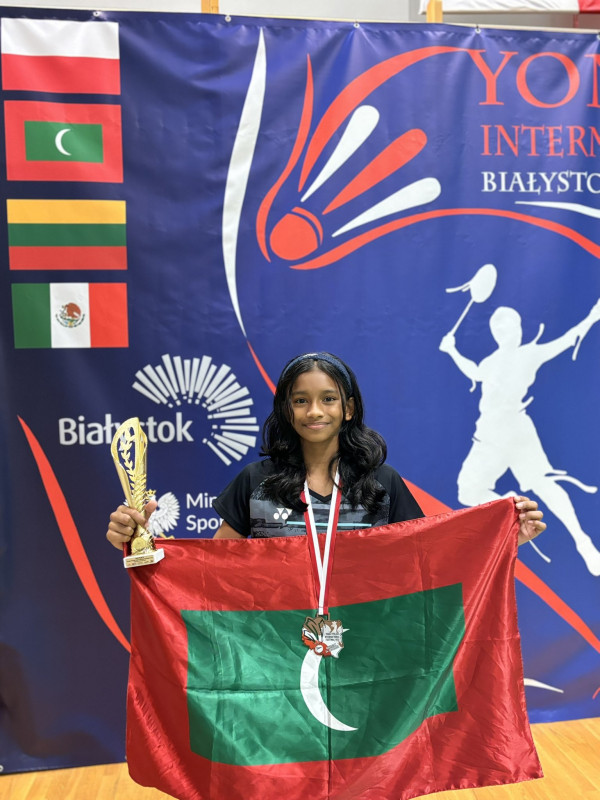 ޔޮނެކްސް ޕޮލިޝް އިންޓަނޭޝަނަލް ފެސްޓިވަލްގައި ވާދަކޮށް، ރާއްޖޭގެ ޒުވާން ބެޑްމިންޓަން ކުޅުންތެރިޔާ ލައިބާ އަޙުމަދު މަޚްލޫފް (އެލީ) ލޯ މެޑަލް ހޯދައިފި އެވެ.