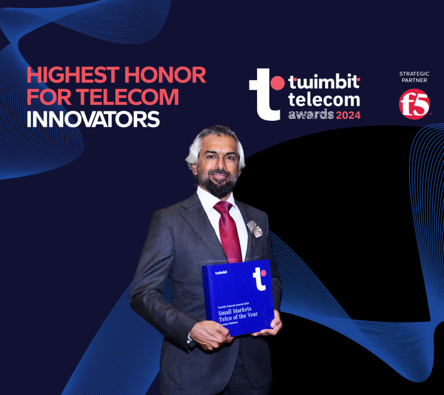 ޓެލެކޮމް އިނޮވޭޓަރުންނަށް ދޭ އެންމެ މަތީ ޝަރަފު ކަމަށްވާ ޓްވިމްބިޓް ޓެލެކޮމް އެވޯޑްސްއިން ވަނީ 23 ކެޓަގަރީއަކުން ފާހަގަކޮށްލެވޭ ކާމިޔާބީތަކުގެ އަގު ވަޒަންކޮށް، ޓެލްކޯ އޮފް ދަ އިޔާ، ޓެލްކޯ ޓު ޓެކްކޯ އޮފް ދަ އިޔާ ފަދަ ދާއިރާތަކުން ފާހަގަކޮށްލެވޭ ކުންފުނިތަކަށް ޝަރަފުވެރި އެވޯޑް ހަވާލުކޮށްފައެވެ. މި އެވޯޑުގެ ސްޓްރެޓީޖިކް ޕާޓްނަރަކީ ޑިޖިޓަލް ތަޖުރިބާތައް ފޯރުކޮށްދިނުމުގައި މަޝްހޫރު ޓެކްނޮލޮޖީ ކުންފުންޏެއް ކަމަށްވާ އެފް5 އެވެ. މި ޕްރޮގްރާމުގެ މީޑިއާ ޕާޓްނަރަކީ ޑީއެންއޭއެވެ.