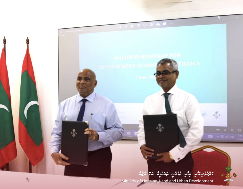 މިނިސްޓަރު ތާރިގު މިހެން ވިދާޅުވީ ''ޑިވެލޮޕިންގ ނެޝަނަލް ސިސްޓަމް އޮފް އިކޮނޮމިކް އެންޑް އެންވަޔަރަމަންޓް ސްޓެޓިސްޓިކްސް އެންޑް އެކައުންޓްސްގެ މަގުޗާޓް" އެއްބަސްވުމުގައި ސޮއިކުރުމަށް ބޭއްވި ޚާއްސަ ރަސްމިއްޔާތުގައި ވާހަކަދައްކަވަމުންނެވެ. އެންވަޔަރަންމަންޓް މިނިސްޓްރީގައި ބޭއްވި މި ރަސްމިއްޔާތުގައި އެއްބަސްވުމުގައި މިނިސްޓްރީގެ ފަރާތުން ސޮއިކުރެއްވީ މިނިސްޓަރު ތާރިގު އިބްރާހީމެވެ. އަދި ހައުސިންގ މިނިސްޓްރީގެ ފަރާތުން ސޮއިކުރެއްވީ މިނިސްޓަރު ޑރ.އަލީ ހައިދަރު އަހުމަދެވެ.