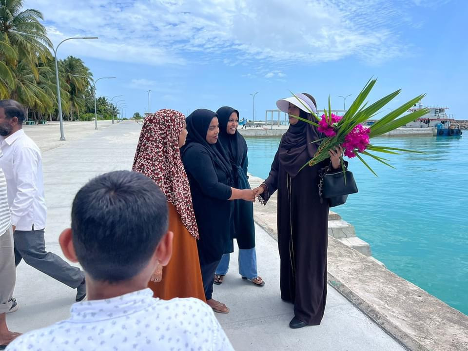 ސޯޝަލް މީޑިއާގައި ހުރި ފޮޓޯ ތަކުން ފެންނަ ގޮތުގައި، މެމްބަރު ސައުދާ އަށް މަރުޙަބާ ދެންނެވުމަށް ދަރަނބޫދޫ އިން ނިކުތީ ތިން މީހުން