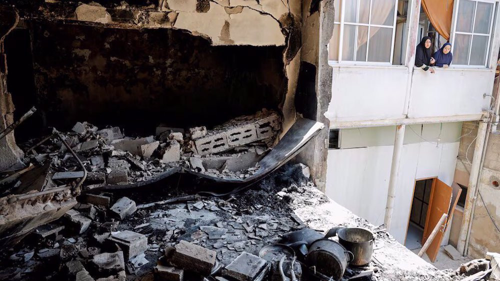ނޫރު ޝަމްސް ރެފިއުޖީ ކޭމްޕަށް ދިން ހަމަލާއަށްފަހު ބިމާ ހަމަކޮށްލާފައިވާ އިމާރާތަކާ ޖެހިގެން ހުރި ގެއްގެ ކުޑަދޮރުން ފަލަސްތީންގެ ދެ އަންހެނަކު ބޭރު ބަލަހައްޓައިގެން