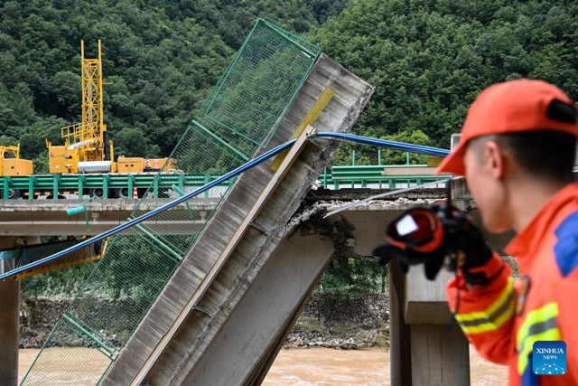 ޗައިނާގެ ހުޅަނގު އުތުރުގެ ޝާންޒީ ޕްރޮވިންސްގައި ބޯކޮށް ވާރޭވެހުމުގެ ސަބަބުން ވެއްޓިފައިވާ ހައިވޭ ބްރިޖު
