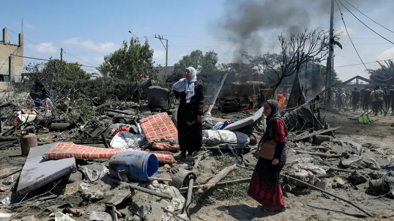 ޣައްޒާގެ ދެކުނުގައި އޮންނަ ޚާން ޔޫނިސްއަށް އިޒްރޭލުން ދިން ބޮމުގެ ހަމަލާއެއްގައި ސުންނާފަތިވެފައިވާ ތަނެއްގައި ފަލަސްތީނުގެ ރައްޔިތުން ތަކެއް ހުއްޓިލައިގެން
