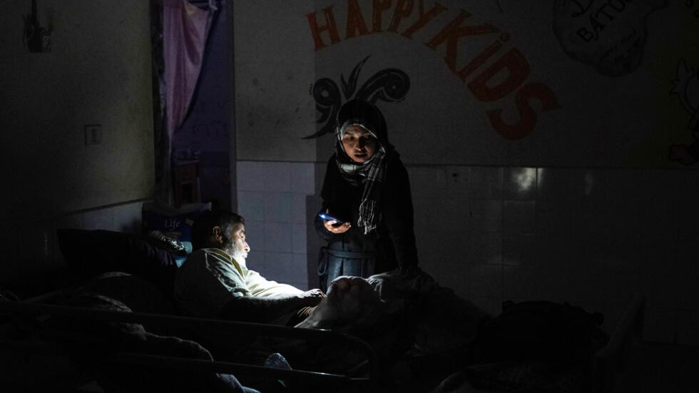 ދާރުލް ބަލާހުގައި ހުންނަ އަލް-އަޤްޞާ ހޮސްޕިޓަލުގައި ކަރަންޓު ކެނޑުމުން ޑޮކްޓަރަކު ފޯނުގެ ފްލެޝްލައިޓް ބޭނުންކުރަނީ