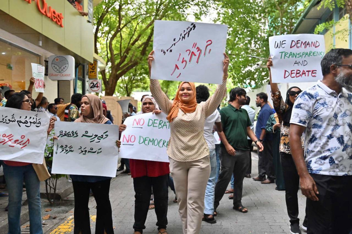 ރައްޔިތުންގެ އެއްވެސް މަޝްވަރާ އެއް ނެތި، ގާނޫނު އަސާސީ އަށް ކުއްލި ގޮތަކަށް ބޮޑެތި ބަދަލުތަކެއް ގެންނަން މުއިއްޒުގެ ސަރުކާރުން އުޅުމުން އެކަމާ ދެކޮޅަށް "ގާނޫނު އަސާސީގެ ދިފާއުގައި" ނަމުގައި ބުދަ ދުވަހު މެންދުރު މުޒާހަރާ ކުރުމަށް ރައްޔިތުންގެ މަޖިލިސް ހުންނަ ސަރަހައްދަށް އެމްޑީޕީގެ މެމްބަރުން ޖަމާވުމުން އެކަމަށް ހުރަސް އެޅުމަށް ސަރުކާރަށް ތާއީދު ކުރާ ބަޔަކު ވަނީ އެއްވެ ހަމަ ނުޖެހުން އުފެއްދުމަށް މަސައްކަތް ކޮށްފައެވެ.