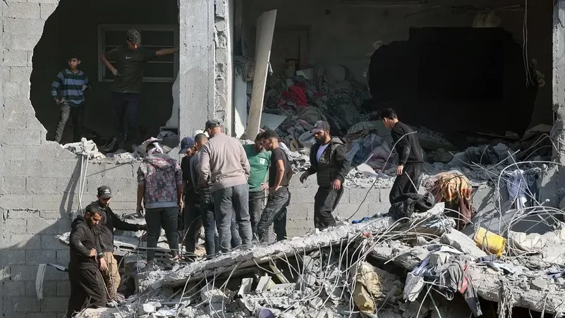 22 ނޮވެމްބަރު 2024 ގައި އިޒްރޭލުން ޣައްޒާ އަށް ބޮން އަޅާ ފުނޑުކޮށްލި އިމާރާތެއްގެ ފަލަސްތީނު ބަޔަކު ޗެކް ކުރަނީ (ފައިލް)