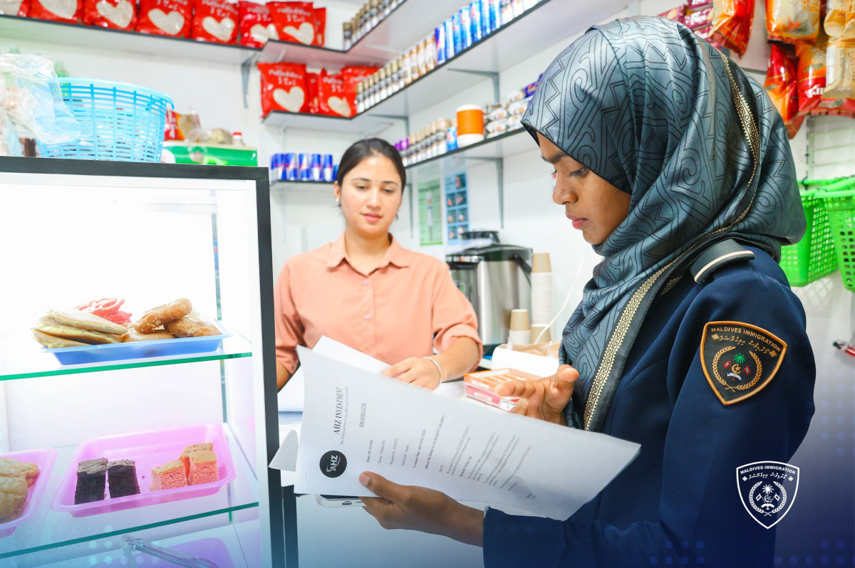 Immigartion in Male' Coffee Shop thakuga hingi raid operation ge therein. Photo: Immigration