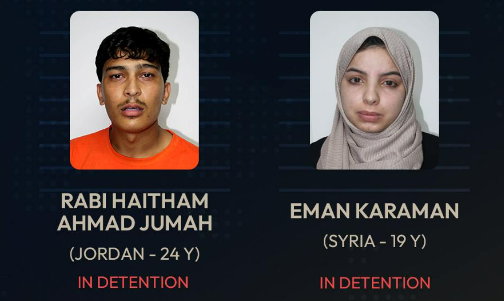 އިމިގްރޭޝަނުގެ ބެލުމުގެ ދަށަށް ގެންގޮސްފައިވަނީ ޖޯޑަންގެ 24 އަހަރުގެ ފިރިހެނަކާއި، ސީރިއާ އަށް ނިސްބަތްވާ 19 އަހަރުގެ އަންހެނެކެވެ.