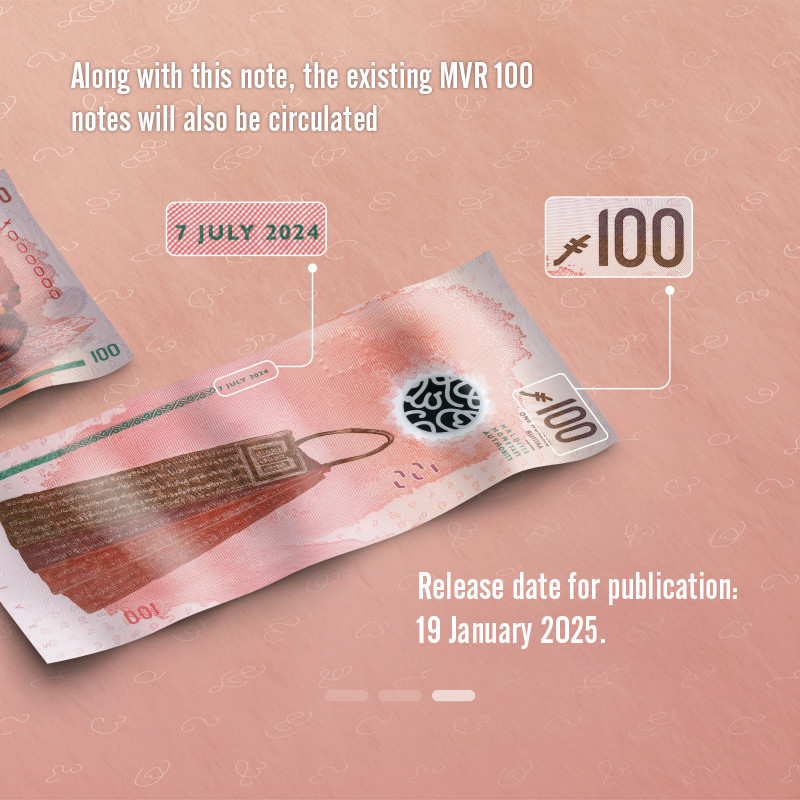 MMA has also stated that the newly printed MVR 100 note will be in circulation from 19 January 2025.