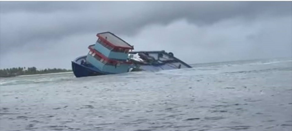 ގއ. އަތޮޅަށް މުދާ ހިފައިގެން ދިޔަ "ލިއޯ ވިންގް" ދޯނި ފަރަށް އަރާފައި. ފޮޓޯ: ނިލަންދޫ ކައުންސިލް