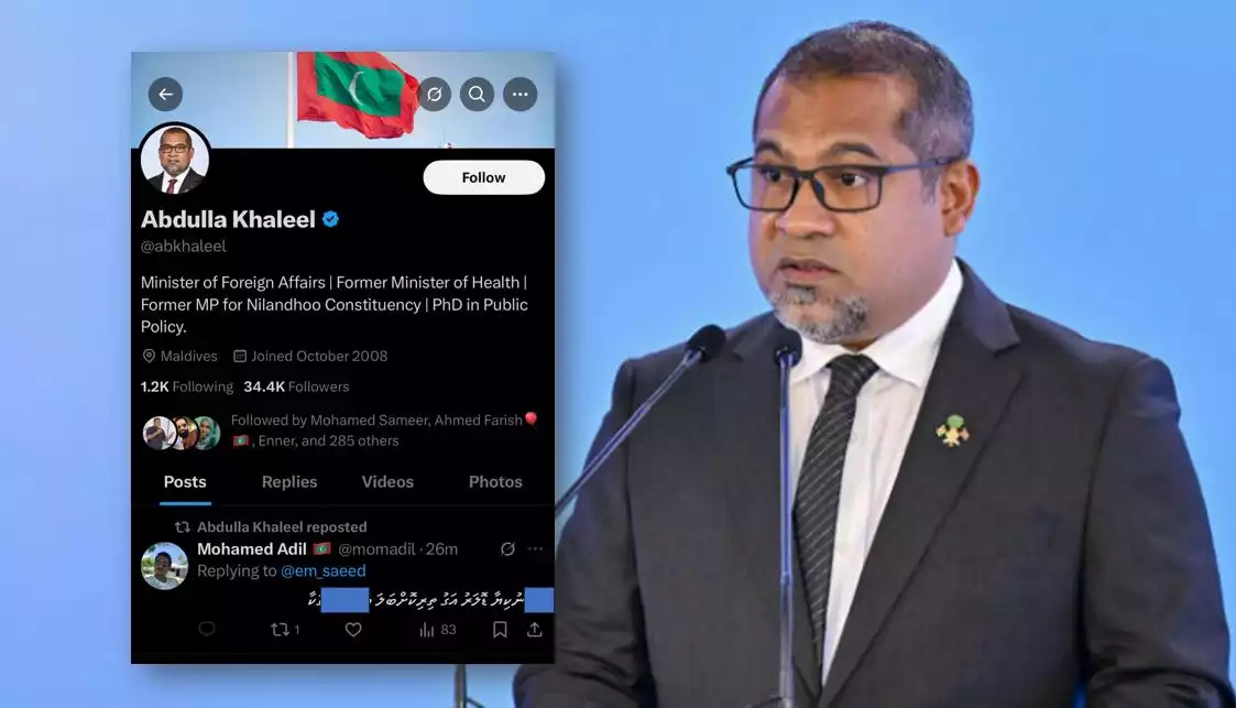 ރައީސް ޑރ.މުހައްމަދު މުއިއްޒުގެ ޚާރިޖީ ވަޒީރު ޑރ. އަބްދުﷲ ހަލީލް ސަރުކާރާ ދެކޮޅު ހަޑި ހުތުރު ބަސްތަކެއް ރީޓްވީޓް ކުރައްވައިފިއެވެ.