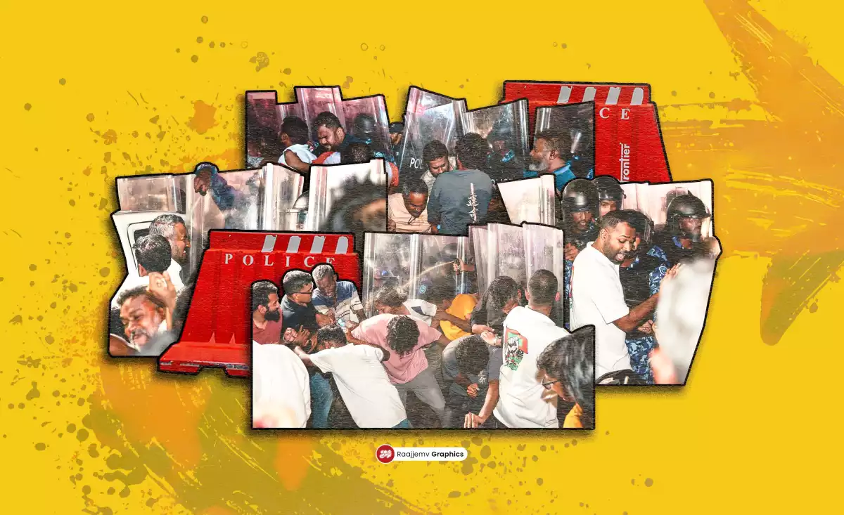 ކޮންމެ އަކަސް މުޒާހަރާގެ ކުރިން ހިންގި ބިރު ދެއްކުމުގެ އުކުޅުތައް ފެއިލްވެ އެތައް ހާސް ބަޔަކު އާޓިފިޝަލް ބީޗް ސަރަހައްދަށް ޖަމާވިއެވެ. ހަމަ ހަގީގަތުަގައި ވެސް ސަރުކާރު ދެކެ ރައްޔިތުން ތިބީ ވަރަަށް ބޮޑަށް ހިތްހަމަ ނުޖެހިފައިކަން ސާފުވާ ވަރަށް ބޯކޮށް މީހުން ޖަމާވިއެވެ. ރައްޔިތުން މިދޭ ސާފު މެސެޖު ބަލައިގަތުމުގެ ބަދަލުގައި، އަނެއްކާ ވެސް ރައީސް މުއިއްޒުގެ ވިސްނުމަކަށް ވީ ބިރު ދެއްކުމެވެ. ބިރު ދައްކައިގެން މީހުން ގެއަށް ފޮނުވާލުމެވެ. ބޮޑު މަންޒަރުގައި އަތްއަޅާ އޮއްބާލުމަށެވެ. މަޖީދީ މަގުން މުޒާހަރާ ކުރާ މީހުން ހިންގައި ގަންނަން މިސްރާބު ޖަހަންވީ އިރު ފުލުހުން ތިބީ ޝީލްޑްތައް ނަގާ، ބަރިބަރިއަށް އެތުރި ގެންނެވެ. ޚިޔާލު ފާޅު ކުރުމުގެ މިނިވަން ކަމާއި އެއްވެ އުޅުމާއި ހަޅުތާލު ކުރުމުގެ ހައްގު ތަކައް ހުރަސް އެޅުމަށެވެ.