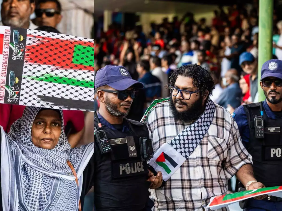 ސޯޝަލް މީޑިއާގައި ދައުރުވަމުންދާ ވީޑިއޯތަކުން ދައްކާ ގޮތުގައި، ފީފާ އިން އިސްރާއީލް ބޭރުކުރުމަށް ގޮވާލާ ޕޯސްޓަރުތަކާއި ބެނާތައް ހިފައިގެން ތިބި ދިވެހި މުސްލިމް ރައްޔިތުން ވަނީ ސުލްހަވެރިކަމާއެކު އެމީހުންގެ ޝުއޫރުތައް ފާޅުކުރަމުން ގެންގޮސްފައެވެ. އަދި ގިނަ އަދަދެއްގެ ފަލަސްތީނުގެ ދިދަތައްވެސް ދަނޑުތެރޭގައި ފެނުނެވެ. ނަމަވެސް ކުއްލިގޮތަކަށް ފުލުހުން އައިސް މި ފަރާތްތައް ދަނޑުން ބޭރުކުރި މަންޒަރު ވަނީ ފެނިގެން ގޮސްފައެވެ.