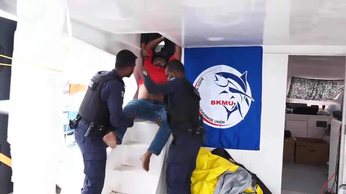 މައުރޫފު އަށް އަނިޔާވީ ފުލުހުން އޭނާ ހައްޔަރު ކުރުމުގެ ތެރޭގައި ދޯނީގެ ސިޑިން ދާމާ ކޫއްތާފައި ގަދަކަމުން ބޭލުމުގެ ތެރޭގައި: ނިޝާން