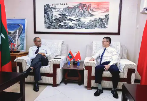 އިލެކްޝަންސް ކޮމިޝަންގެ ރައީސް މުހައްމަދު ޒާހިދު ޗައިނާގެ ސަފީރު ކޮންގް ޝިއަންހުއާ ބައްދަލުކުރައްވައި، ރާއްޖޭގެ ގިނަ ޕާޓީ އެކުލެވޭ ޑިމޮކްރަޓިކް ނިޒާމު ހަރުދަނާކުރުމަށާއި އިޤްތިޞާދީ އަދި އިޖުތިމާޢީ ތަރައްޤީ ކުރިއަރުވައި ރައްޔިތުންގެ ދިރިއުޅުމުގެ ފެންވަރު މަތިކުރުމަށް ޗައިނާގެ ތަޖުރިބާއިން ދަސްކުރަން ބޭނުންވާ ކަމަށް ވިދާޅުވި.
