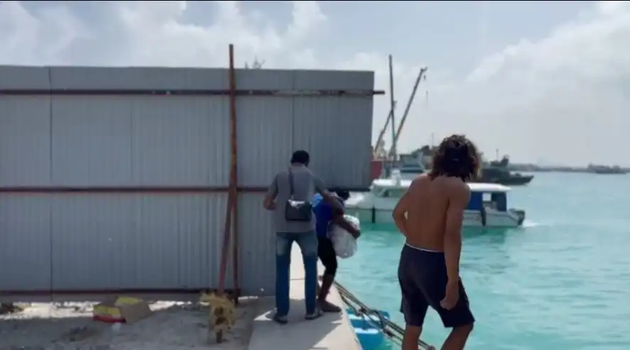 ބޯޓު ފަހަރު ގާތް ކުރަން ހަމަޖައްސާފައިވާ ހުރި ސަރަހައްދުގެ އެއްގަމުގައި ޓިނު ޖަހާ ބަންދު ކޮށްފައިވާއިރު މުދާ އަރުވަން އަދި މީހުން އޮޑިފަހަރަށް އަރާފައިބަން ހުރީ، ޓިނު ގަނޑެއް ފޭކޮށްލައިފައި ހުރި ކުޑަ ކެންޑުމެކެވެ.