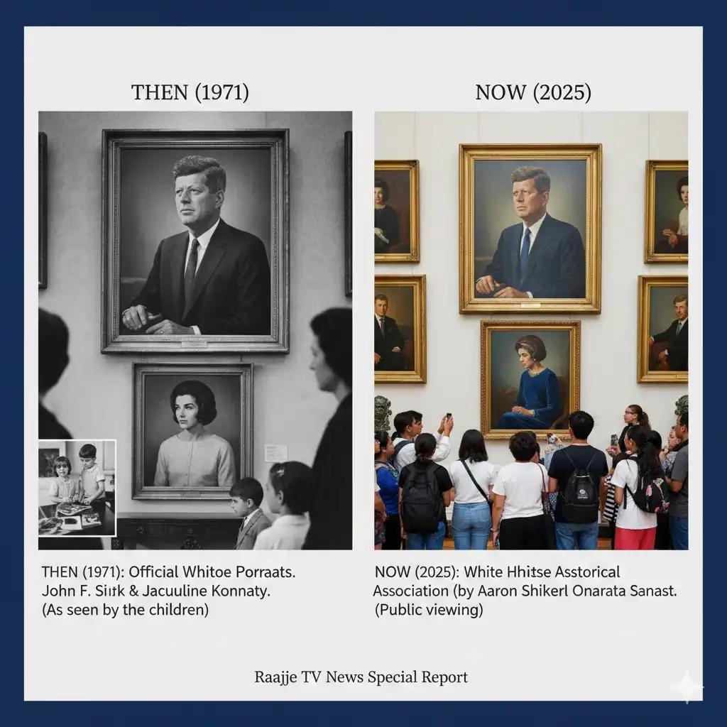 ވައިޓް ހައުސްގެ އެތެރޭގައި: އެ ރޭ ނިކްސަން އާއިލާއިން ވަނީ ކެރޮލައިން އާއި ޖޯން ޖޫނިއަރއަށް، އެ ދެބޭފުޅުން ކުރިން އުޅުއްވި ކޮޓަރިތަކާއި، ބައްޕަ މަސައްކަތްކުރެއްވި އޯވަލް އޮފީސް ދައްކަވާލައްވާ ފައެވެ. ދެ އާއިލާއިން އެކުގައި ރޭގަނޑުގެ ފަރިއްކޮޅެއްގައި ބައިވެރިވިއެވެ. މިއީ ސިޔާސީ ޚިޔާލުތަފާތުވުންތަކަށްވުރެ އިންސާނިއްޔަތުކަން މާ މަތިވެރިކަން ހާމަކޮށްދިން ވަގުތުކޮޅެކެވެ. ނިކްސަންގެ ދެ ދަރިކަނބަލުން ކަމަށްވާ ޓްރީޝާ އާއި ޖޫލީ ވަނީ ކެނެޑީގެ ދަރިކަލުންނާ ދަރިކަނބަލުން ނަށް މުޅި ވައިޓް ހައުސް ދައްކަވާ ލައްވާފައެވެ. އެންމެ އަސަރުގަދަ ވަގުތުކޮޅަކީ، އެ ދެބޭފުޅުންގެ ބައްޕަ މަސައްކަތްކުރެއްވި "އޯވަލް އޮފީސް" އަށް އެ ދެބޭފުޅުން އެކަނި ވަދެވަޑައިގަތުމަށް ފުރުސަތު ދިން ވަގުތެވެ. އެއީ ޖޯން ޖޫނިއަރ އޭނާގެ ބައްޕަގެ މޭޒުކޮޅު ދަށުގައި ކުޅެން އިންނަވަނިކޮށް ނަގާފައިވާ މަޝްހޫރު ފޮޓޯގެ ހަނދާންތައް ހުރި ތަނެވެ. ކުޑަ ޖޯން ޖޫނިއަރ އަށް އޭނާގެ ބައްޕަގެ ގިނަ ހަނދާންތަކެއް ނެތް ނަމަވެސް، މި ދަތުރުގެ ސަބަބުން އެ ހަނދާންތައް އޭނާގެ ހިތްޕުޅުގައި އައުވެގެންދިޔައެވެ.