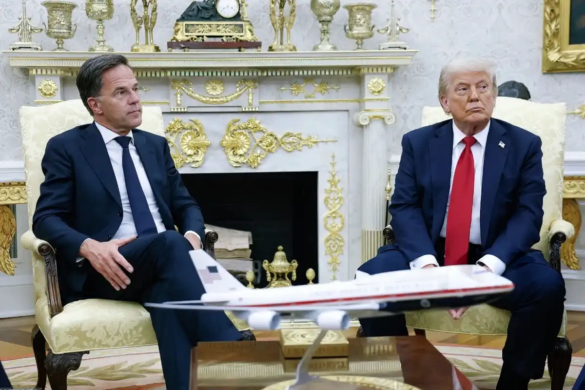 އެމެރިކާގެ ރައީސް ޓްރަމްޕް އާއި، ނޭޓޯގެ ސެކްރެޓަރީ ޖެނަރަލް ރުޓޭ މީގެ ކުރިން ވައިޓް ހައުސްގައި ބައްދަލު ކުރެއްވުމުގެ ތެރެއިން | ގެޓީ އިމޭޖަސް