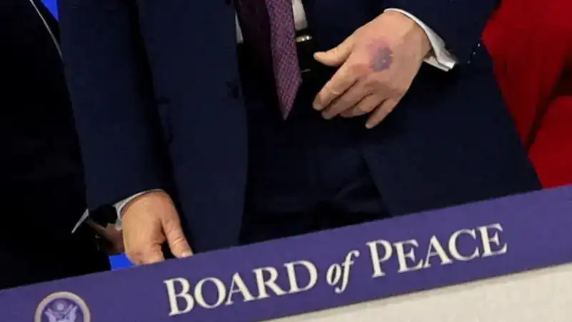 ޑާވޯސް ގައި "ބޯޑް އޮފް ޕީސް" އިނިޝިއޭޓިވްގެ ޗާޓަރު އިއުލާނު ކުރެއްވުމަށް ބޭއްވި ރަސްމިއްޔާތުގައި އެމެރިކާގެ ރައީސް ޑޮނަލްޑް ޓްރަމްޕްގެ އަތްޕުޅުގައި ނޫފައިގެންފައިވާ ތަނެއް ވަނީ ފާހަގަ ވެފައި - ޖެނުއަރީ 22، 2026. | ރޮއިޓަސް