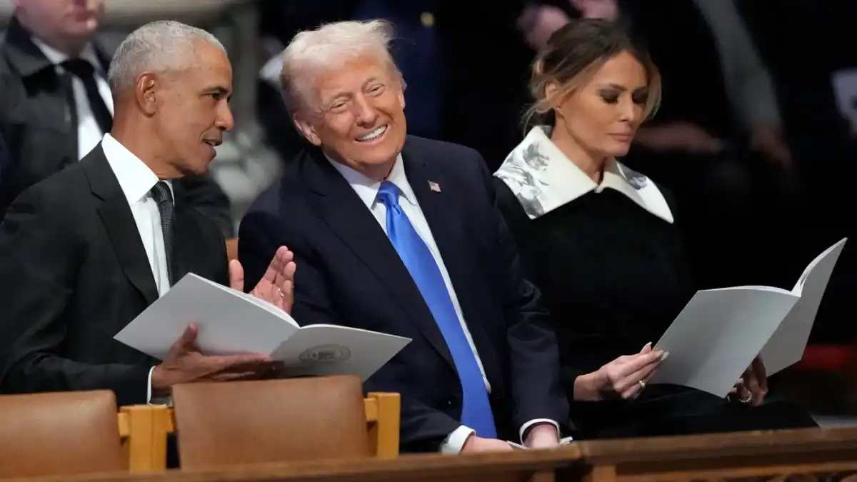 އެމެރިކާގެ ކުރީގެ ރައީސް ޖިމީ ކާޓާގެ ޖަނާޒާގައި އެމެރިކާގެ ރައީސް ޑޮނަލްޑް ޓްރަމްޕް އާއި، ކުރީގެ ރައީސް ބަރަކް އޮބާމާ | ރޮއިޓާސް
