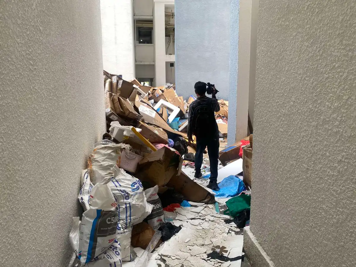 ރާއްޖެއެމްވީން އެސަހައްދަށް ގޮސް ބެލިއިރު، ކުނި ނެގުމުގެ ރަނގަޅު އިންތިޒާމެއް ހަމަޖައްސާފައިނުވެ އެވެ. ފްލޯރތަކުގައި ޑަސްބިން ބަހައްޓާފައިނުވެ އެވެ. އަދި ޓަވަރުތަކުގެ ތިރީގައި ބަހައްޓާފައި ހުރީ އެންމެ ޑަސްޓްބިން އެކެވެ. އެ ޑަސްޓްބިން ފުރި މުޅި ސަރަހައްދަށް ވަނީ ކުނިތައް ފެތުރިފަ އެވެ.