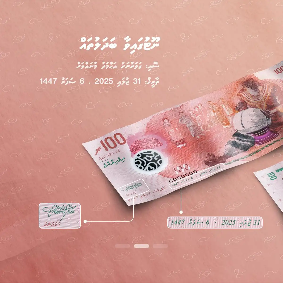 100 ރުފިޔާގެ އާ ނޫޓު މަރުކަޒީ ބޭންކް، މޯލްޑިވްސް މަނިޓަރީ އޮތޯރިޓީ (އެމްއެމްއޭ) އިން ބާޒާރަށް ނެރެފި. | އެމްއެމްއޭ