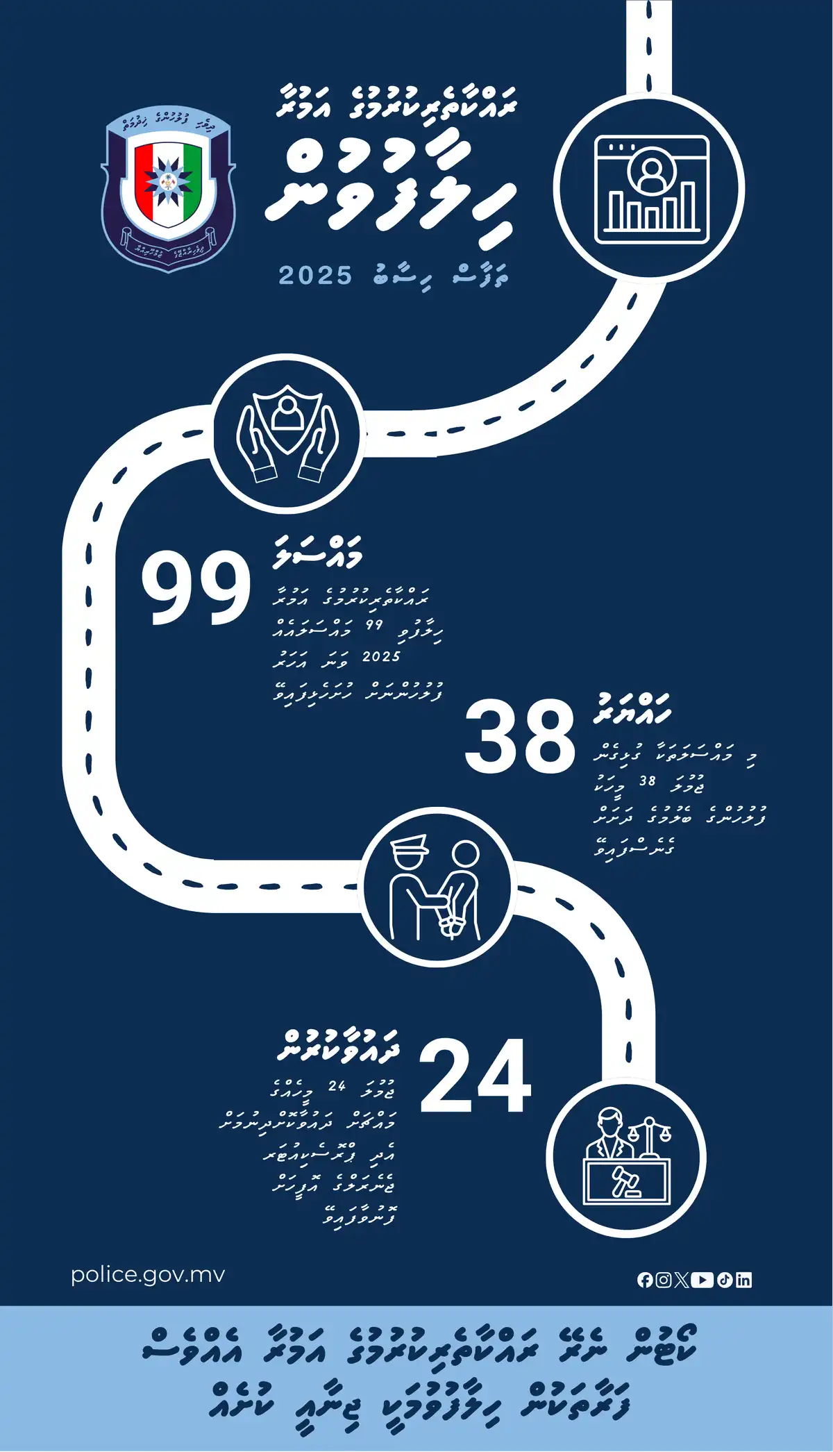 އެގޮތުން 2025 ވަނަ އަހަރުގެ ތެރޭގައި މިފަދަ 24 މައްސަލައެއްގައި ދައުވާކުރުމަށް ޕްރޮސިކިއުޓަރ ޖެނެރަލްގެ އޮފީހަށް ހުށަހަޅާފައިވާ ކަމަށް ފުލުހުން ބުންޏެވެ.