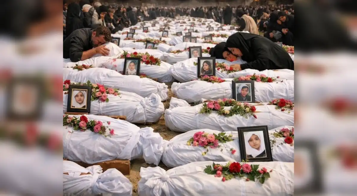 އިޒްރޭލާއި އެމެރިކާ ގުޅިގެން އީރާނުގެ އަންހެން ކުދިން ކިޔަވާ ސްކޫލަކަށް ދިން ހަމަލާގައި ޝަހީދުވި 165 ކުދިންގެ ހަށިތައް، އެ ކުދިންގެ މައިންބަފައިންނާއި އާއިލާތަކުން ވަޅުލަނީ. | އެކްސް