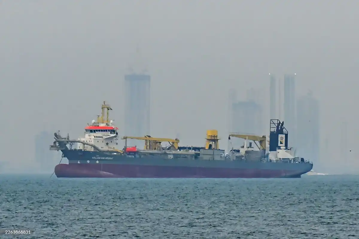 ހޮރްމޫޒް ކަނޑުއޮޅީގެ ދަތުރުފަތުރުތަކަށް ބުރޫއެރުމާ ގުޅިގެން، 2026 މާރިޗު 2 ވަނަ ދުވަހު ދުބާއީގެ އައްސޭރިފަށާ ދުރުގައި، ޔުނައިޓެޑް އަރަބް އެމިރޭޓްސް (ޔޫއޭއީ) ގެ ސަރަހައްދީ ރަތްކަނޑުގައި އާގުބޯޓު ފަހަރު ބަނދަރުކޮށްފައި އޮތް މަންޒަރު. | ގެޓީ އިމޭޖަސް