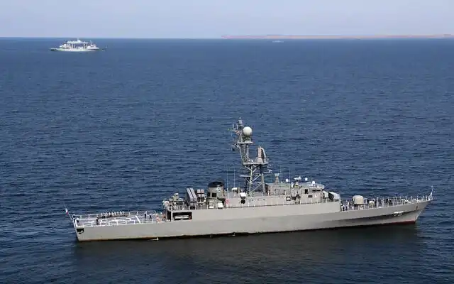 އީރާނުގެ ޑިފެންސް މިނިސްޓްރީން 12 މާރިޗު 2024 ގައި އާންމުކޮށްފައިވާ މި ފޮޓޯއިން ފެންނަނީ، އޮމާން ކަނޑުގެ ސަރަހައްދުގައި ދަތުރުކުރަމުންދާ އިސްލާމިކް ރިޕަބްލިކް އޮފް އީރާން ނޭވީގެ މަނަވަރު "އައި.އާރް.އައި.އެސް ދެނާ (75)". | އޭއެފްޕީ