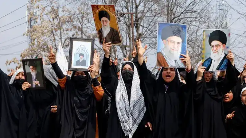 އިންޑިއާގެ ކަޝްމީރުގެ މެދުތެރޭގެ ބުދްގާމް ޑިސްޓްރިކްޓުގައި، މިދިޔަ ހޮނިހިރު ދުވަހު އެމެރިކާއާއި އިޒްރޭލުން ދިން ހަމަލާތަކެއްގައި އީރާނުގެ ރޫހާނީ ލީޑަރު އަލީ ޚާމަނާއީ އަވަހާރަކޮށްލުމާ ގުޅިގެން، މާޗް މަހުގެ 6 ވަނަ ދުވަހު މުސްލިމް އަންހެނުން ނުކުމެ އެމެރިކާއާއި އިޒްރޭލް ދެކޮޅަށް އަޑުއުފުލައި މުޒާހަރާ ކުރަނީ. | ގެޓީ އިމޭޖަސް