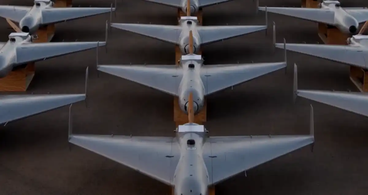 ފެބްރުއަރީ މަހުގެ 28 ވަނަ ދުވަހު އެމެރިކާގެ އަސްކަރިއްޔާއިން އާންމުކުރި ޕްރޮޕަގަންޑާ ވީޑިއޯއަކުން ނަގާފައިވާ މި ފޮޓޯއިން ފެންނަނީ، އީރާނާ ދެކޮޅަށް ކުރަމުންދާ ޣައިރު ގާނޫނީ އުދުވާނީ ހަނގުރާމައިގައި ބޭނުންކުރާ ކަމަށް ބުނާ، އެމެރިކާއިން އުފައްދާފައިވާ "ޝާހިދު" މަރުކާގެ ޑްރޯންތަކުގެ ކޮޕީތަކެއް. | ޕްރެސްޓީވީ