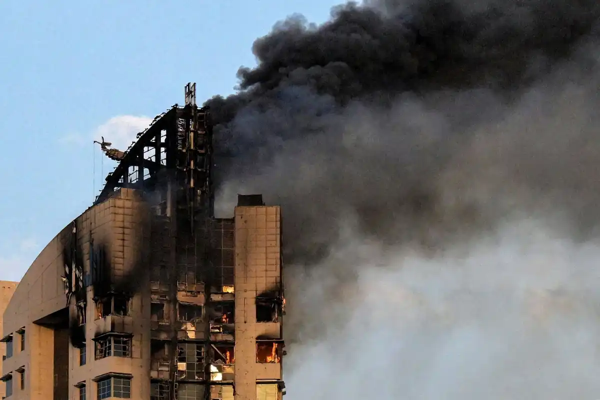 2026 މާރިޗު މަހުގެ 8 ވަނަ ދުވަހު ކުވެއިތު ސިޓީއަށް ދިން ޑްރޯން ހަމަލާއަކާ ގުޅިގެން، އެ ސިޓީގެ އުސް އިމާރާތަކުން ދުން އަރަމުންދަނީ. | ގެޓީ އިމޭޖަސް