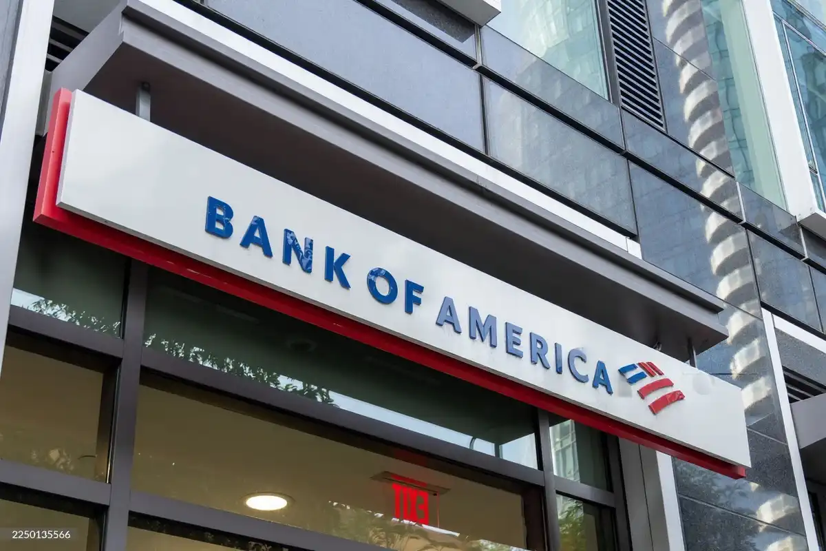 ކެލިފޯނިއާގެ ސެން ފްރެންސިސްކޯގައި ހުންނަ ބޭންކް އޮފް އެމެރިކާ ބްރާންޗެއްގެ ބޭރުގައި އެ ބޭންކުގެ ލޯގޯ ފެންނަ މަންޒަރެއް. | ގެޓީ އިމޭޖަސް