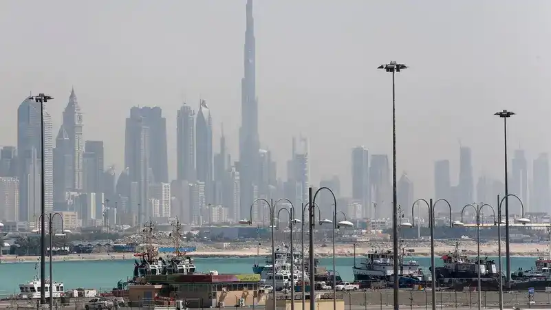 ޕޯޓް ރާޝިދުގައި އުޅަނދު ފަހަރު ބަނދަރުކޮށްފައި އޮތް މަންޒަރާ އެކު، ދުރުން ބުރުޖް ޚަލީފާ ފެންނަން. | ރޮއިޓާސް