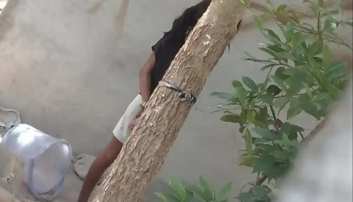 އުތުރުގެ ރަށެއްގައި އަށް އަހަރުގެ ކުއްޖެއްގެ ދެ އަތް ބަނދެ، ގަހެއްގައި އައްސާފަ | ސޯޝަލް މީޑިއާ