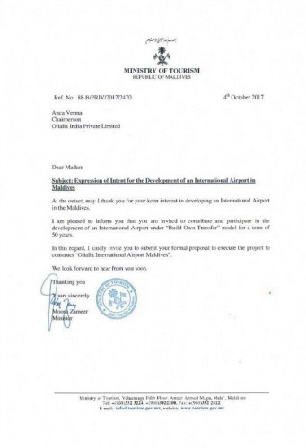 ރާއްޖެ.އެމްވީ އަށް މައުލޫމާތު ލިބިފައިވާ ގޮތުގައި ބައިނަލްއަޤްވާމީ އެއަރޕޯރޓެއް އެޅުމަށް ޓޫރިޒަމް މިނިސްޓަރ މޫސާ ޒަމީރު ސޮއެކުރައްވައި ދައުވަތު ދީފައި ވަނީ އޮލިއާލިއާ އިންޑިއާ ކިޔާ ކުންފުންޏަކަށެވެ. މިކުންފުންޏަކީ އިންޑިއާގައި ހަތިޔާރުގެ ވިޔަފާރިކުރާ އަބީޝެކް ވަރުމާގެ އަންހެނުން އަންކާ ވަރުމާގެ ކުންފުންޏެކެވެ. އުމުރުން 30 އަހަރުގެ އަންކާ ވަރުމާއަކީ ރޫމޭނިއާގެ ކުރީގެ ރީތީގެ ރާނީއެވެ. އަދި އަބީޝެކް ވަރުމާއަކީ ވިޔަފާރީގައި ސިއްރު މުއާމަލާތްތައް ހިންގަމުންދާ ކަމަށް ތުހުމަތުކުރެވޭ މީހެކެވެ. އަދި ތަހުޤީޤް ކުރަމުންދިޔަ އޭނާގެ ވިޔަފާރީގެ މައްސަލައެއްގައި ކަމާ ބެހޭ ފަރާތްތަކަށް މައުލޫމާތު ނުދީ ފިލައިގެން އުޅުނު މައްސަލައިގައި ޖަލަށް ވެސް ލީ މީހެކެވެ.
