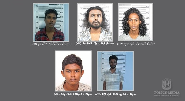Police Media states that they are searching for individuals from Seenu atoll Hithadhoo, Thalib Naseem, 19, of Ulfa Manzil, Firaq Abdul Raheem, 28, of Dhonakulhi, Shanoof Ali, 25, Pingpong Ge, Ahmed Fariu Farooq, 22, of Rasreethi, Ahmed Jinaan, 18, Nasira'dhooge and two underage persons.