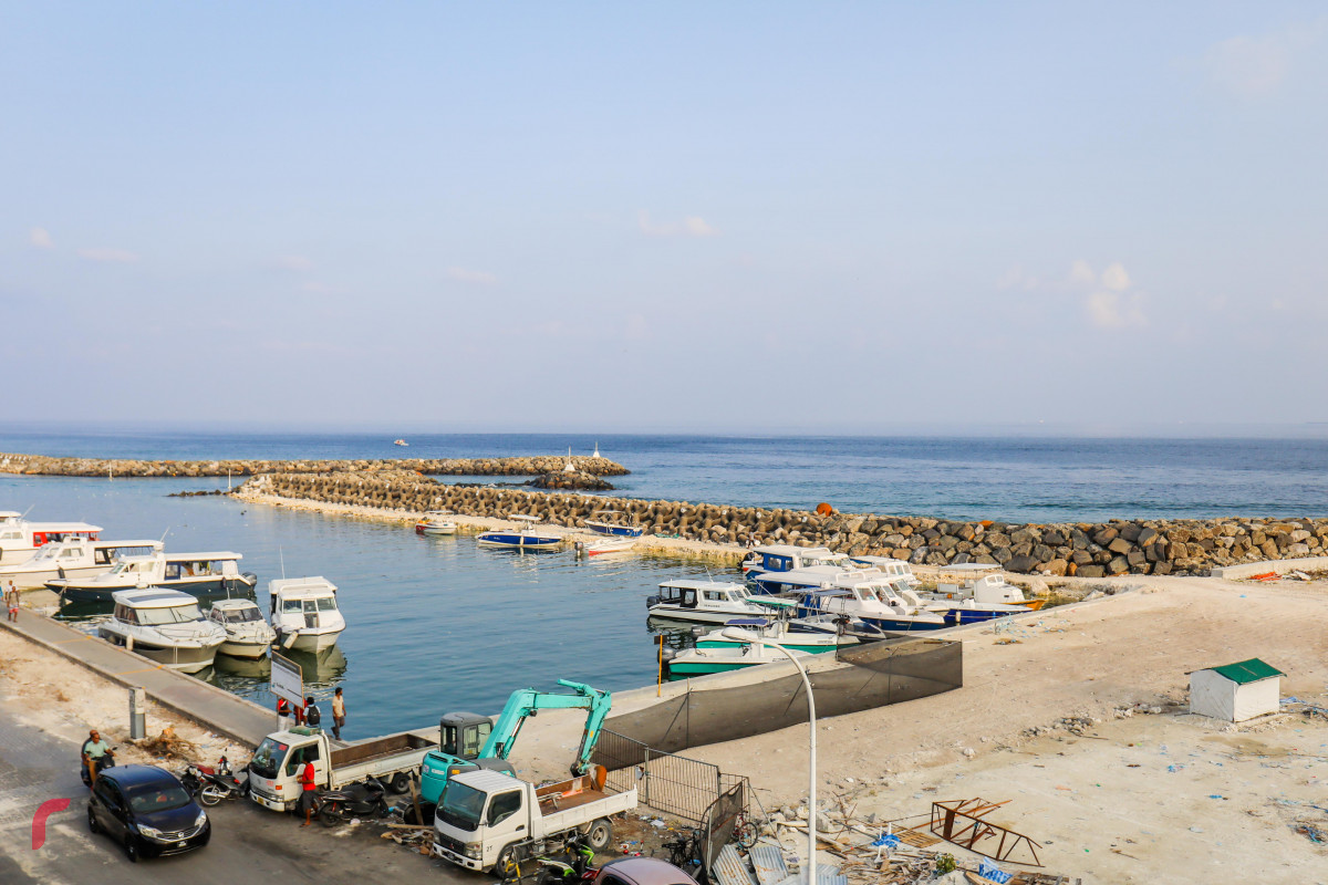 The southern coast of capital city Male’ has been closed-off for cargo boats as part of the development of Boduthakurufaanu road.