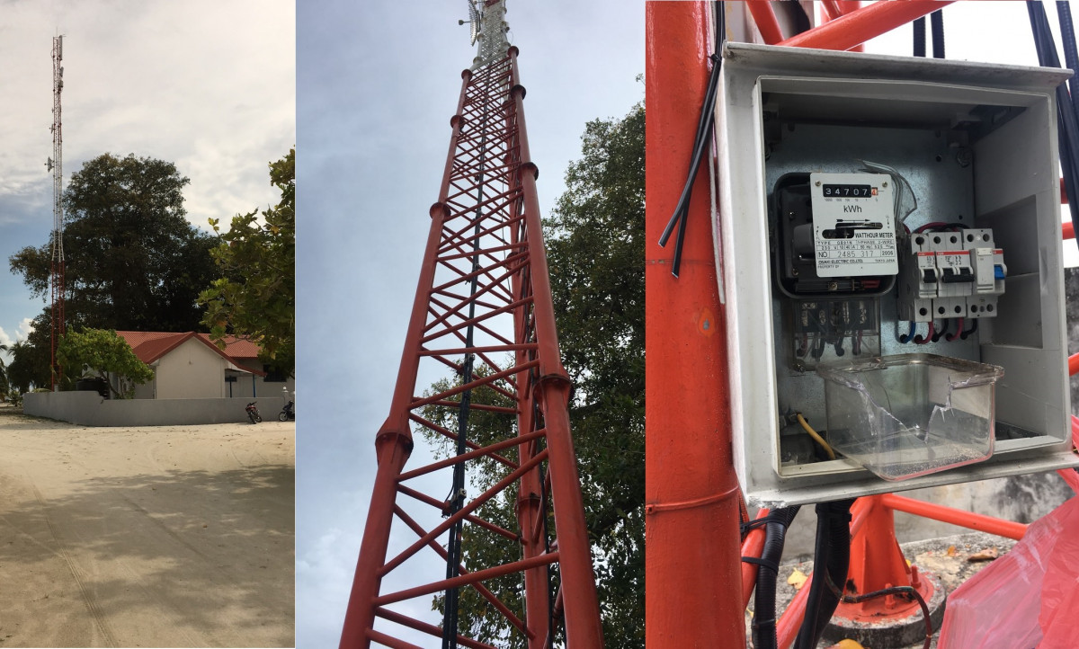 A telecommunication tower set up near the power house in Olhuvelifushi island has been struck by lightning, causing a power outage there on Wednesday.