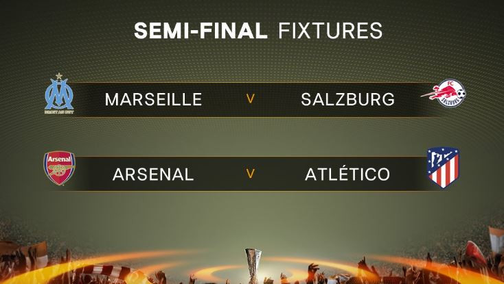 ޔުއެފާ ޔުރޮޕާ ލީގުގެ ސެމީ ފައިނަލުގައި އިނގިރޭސިވިލާތުގެ އާސެނަލް އަދި ސްޕެއިންގެ އެޓްލެޓިކޯ މެޑްރިޑް ވާދަކުރަން ޖެހިއްޖެއެވެ.