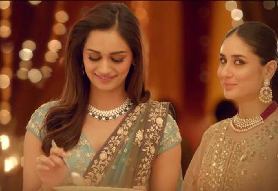 ފުޅާ ދާއިރާއެއްގައި އިންޑިއާގައި ގަހަނާ އުފައްދާ ވިއްކާ ކުންފުންޏެއް ކަމަށްވާ މަލަބާރު ގޯލްޑް އެންޑް ޑައިމަންޑުގެ އިސްތިހާރަކުން ކަރީނާ އާއިއެކީ މަނޫޝީ ފެނިގެންދާއިރު އެދެމީހުން ވެސް ފެނިގެންދަނީ ކައިވެނީގެ ހަފްލާއެއްގެ ތެރެއިންނެވެ.