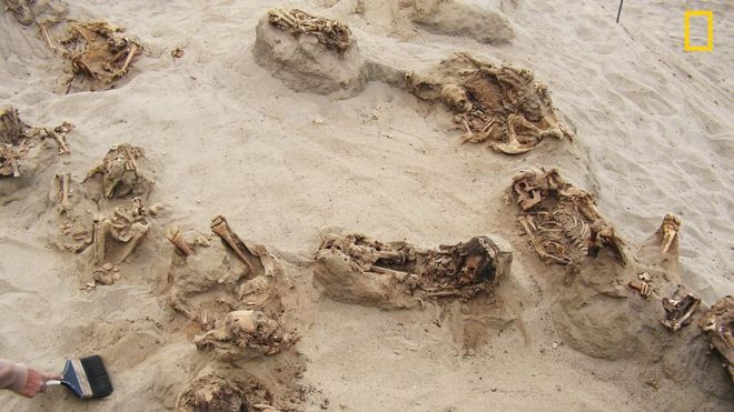 ފުރަތަމަ ފަހަރަށް އިންސާނުން ގުރުބާން ކޮށްފައިވާ ކައްވަޅެއް ފެނިފައި ވަނީ 2011 ވަނަ އަހަރުއެވެ. އެފަހަރު އެ ކަށްވަޅު ފެނިފައި ވަނީ 'ހުއަންޗަކުއިޓޯ ލަސް ލަމަރސްގައި' ހުރި 3500 އަހަރުގެ ދުވަސްވީ ފައްޅި އަކުންނެވެ. އެތާގައިވަނީ 40 އިންސާނުންގެ ގަބުރާއެކު 74 ޖަނަވާރުންގެ ގަބުރު ފެނިފައެވެ.