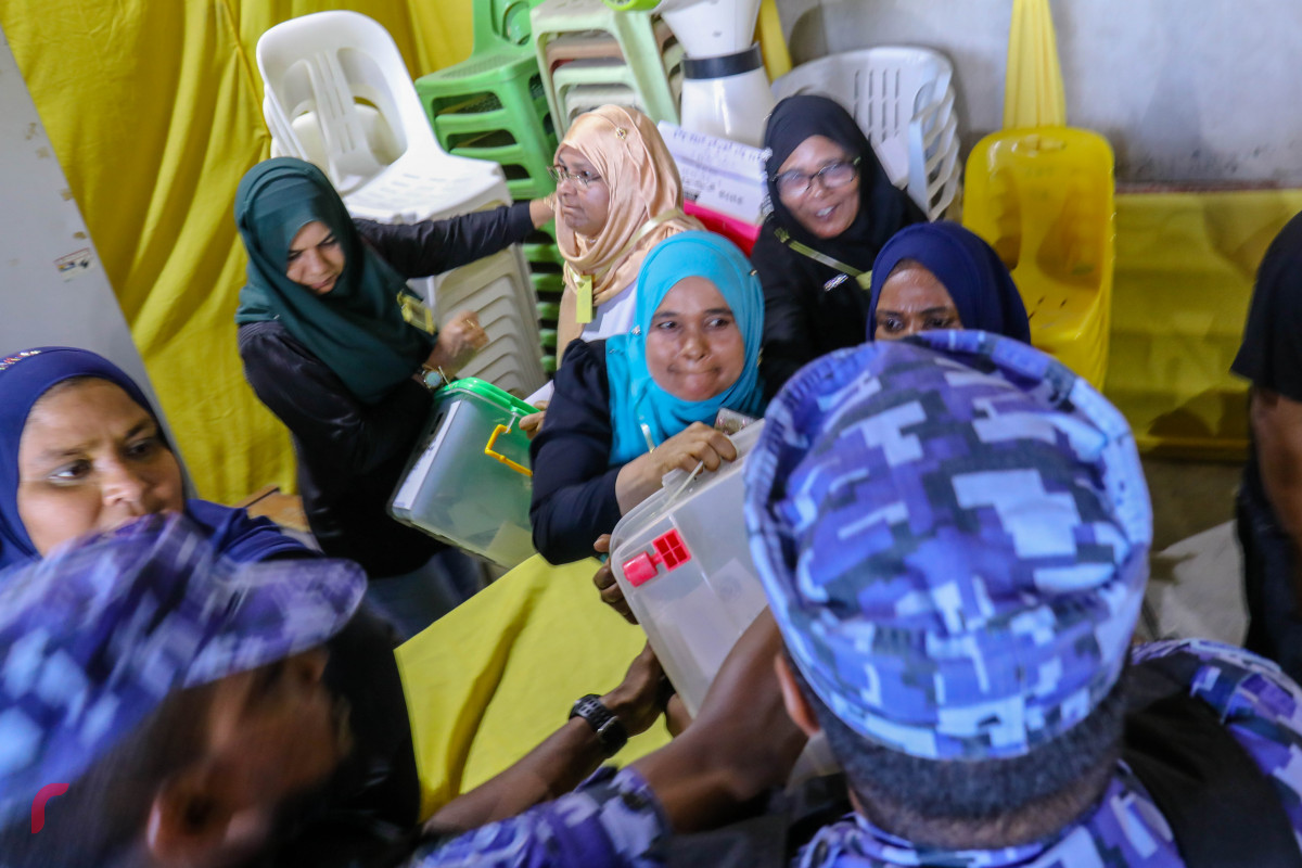 އެމްޑީޕީ ޕްރައިމަރީގެ ވޯޓުލުން ހުއްޓުވުުމަށް ފުލުހުން މަސައްކަތްކުރަނީ -- ފޮޓޯ: ރާއްޖެެ.އެމްވީ
