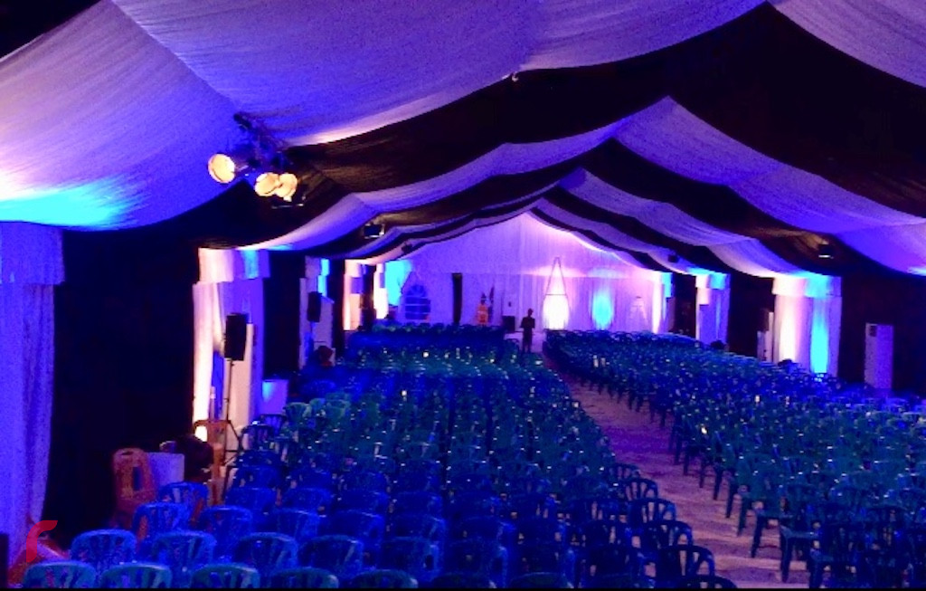 ސަތޭކަފަސްދޮޅަސް ފޫޓު ދިގު ޓެންޓަކުން ހިޔާކޮށްފައިވާ އެ ދަރުބާރަކީ 800 އެއްހާ މީހުންގެ ޖާގައިގެ ތަނެކެވެ. އުކުޅަހު ބަނދަރު ސަރަހައްދުގައި އެ ތަން ހެދުމުގެ މަސައަކަތް ފެށީ މިދިޔަ އަންގާރަ ދުވަހުއެވެ. ކޮންގްރެސް ބާއްވާ ދަރުބާރުގޭގެ މަސައްކަތް ބުރާސްފަތި ދުވަހުގެ ރޭ ނިންމާލާފައިވާއިރު، ތަފާތު އެކި ކުލަތަކުން އެ ތަން ވަނީ ދިއްލާފައެވެ.
