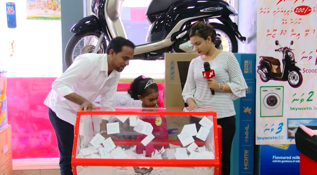 ސައިކަލް ގެ ނަސީބުވެރި ފަރާތަކަށް ހޮވިފައިވަނީ ޒޫނާ މޫސާ A002067. އޮޓޯ މެޝިންގެ ނަޝީބުވެރި ފަރާތަކަށް ހޮވިފައިވަނީ މައުސޫމާ އަބްދުﷲ A237929. ޓީވީގެ ނަސީބުވެރި ފަރާތަކަށް ހޮވިފައިވަނީ އިސްމާއިލް ނައީމް A070725 އެވެ.