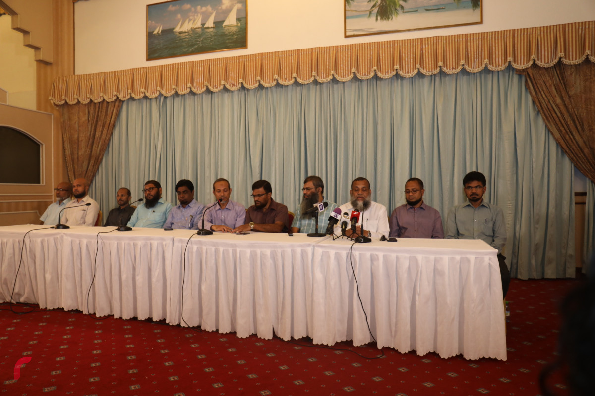 މިއީ 'މަޝްހޫރު' ދީނީ އިލްމުވެރިންތަކެއް ދެއްވާ ޕްރެސް ކޮންފަރެންސެއްކަމަށް ޕީޕީއެމްއިން ބުނިނަމަވެސް، އާއްމު ގޮތެއްގައި ދީނީ ދަރުސް ދެއްވާ ބޭފުޅުން އެތަނުގައި މަދެވެ. އަދި އާއްމުންނަށް ފަރިތަ މޫނުތަކަކަށް ފެނުނީ ދީނީ ދަރުސް ދެއްވުމަށްވުރެ ބޮޑަށް އާއްމުކޮށް ސިޔާސީ ކަންކަމުގައި އުޅުއްވާ ބައެއް ބޭފުޅުންނެވެ. އަދި މީގެ ތެރެއިން ބައެއް ބޭފުޅުންނަކީ ދީނީ ދަރުސް ދެއްވުމަށްވުރެ ބޮޑަށް 'ދީނަށްޓަކައި، ޤައުމަށްޓަކައި'، އޭ ބުނެ ހިންގާ ސިޔާސީ ބައެއް ކަންކަމުގައި ފެންނަ ބޭފުޅުންތަކެކެވެ.