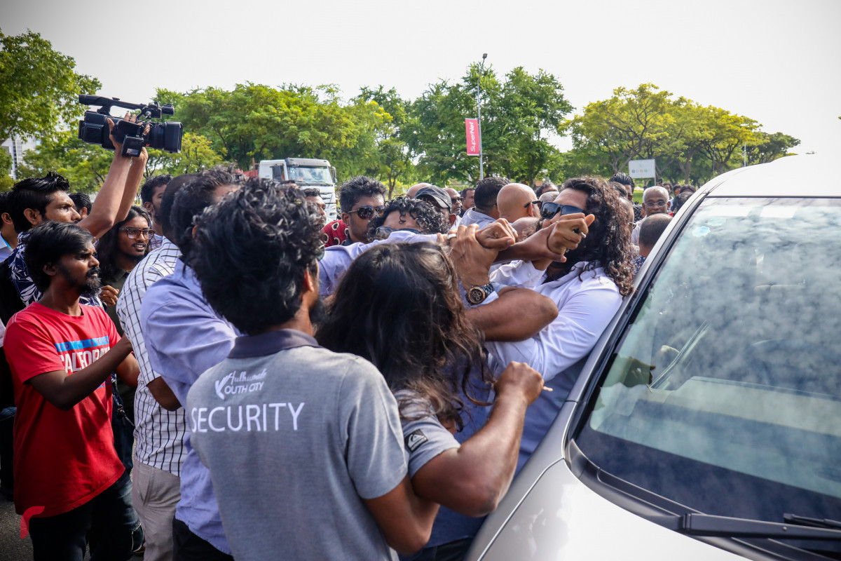 އިބޫ އަށް ހުޅުމާލޭން ހަމަލަ ދިނުމަށް ދެތިން ޒުވާނަކު ވެގެން މަސައްކަތްކޮށްފައިވާ އިރު، އިބޫ ހުޅުމާލެ އަށް ވަޑައިގެންނެވީ ރިޔާސީ އިންތިޚާބުގެ ދޮރުން ދޮރަށް ކެމްޕެއިންގެ ތެރެއިންނެވެ. ހަމަނުޖެހުން ހިންގުމާ ގުޅިގެން ކުޑަވަގުތުކޮޅަކަށް ދޮރުން ދޮރަށް ހިނގުން މެދުކަނޑާލެއްވުމަށް ފަހު އަނެއްކާ ވެސް ކުރިއަށް ގެންދެވިއެވެ. ހަމަލާ ދޭން އުޅެ ނާކާމިޔާބުވުމުން ބަޔަކު ފަހުން ވަނީ އިބޫއާ އެކު ހަރަކާތްތެރިވި ބައެއް މީހުން ގަޔަށް ކަޅުތެޔޮ ވެސް ޖަހާފައެވެ.