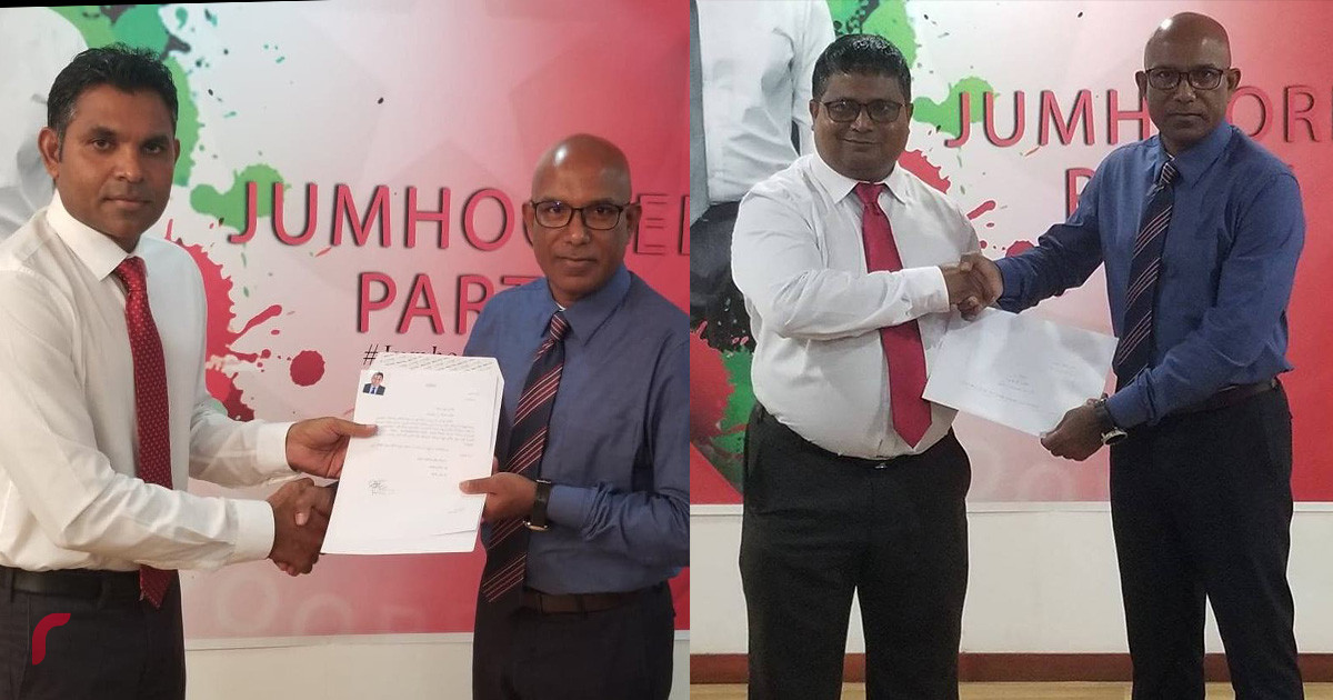 ޖުމްހޫރީ ޕާޓީގެ ނާއިބު ލީޑަރު ހުސެއިން ރަޝީދާއި ކާށިދޫ ދާއިރާގެ މެންބަރު ފައިޞަލްް ނަސީމް ރަނިންގ މޭޓު ކަމުގެ ފޯމް ޖޭޕީގެ ސެކްޓްރީ ޖެނެރަލް އަހުމަދު ސަމީރާ ހަވާލު ކުރައްވަނީ